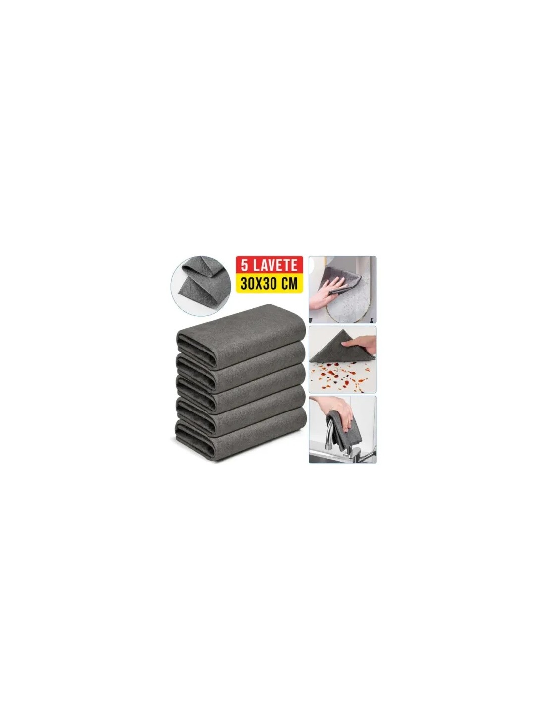 Set de 5 lavete magice din microfibră premium, dimensiune 30x30 cm, ideale pentru curățare rapidă, fără scame și fără zgârieturi. Absorb foarte bine, nu lasă urme, sunt perfecte pentru mobilier, sticlă, inox, electrocasnice, interior auto și ecrane.