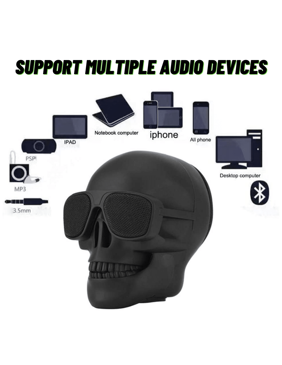 Boxa portabila tip craniu - un cadou interesant pentru cei pasionati de muzica! Boxa are o forma foarte interesanta, iar butoanele si sloturile pentru conectare se afla pe partea din spate.