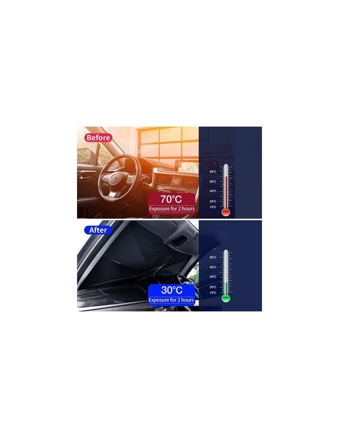 Parasolarul in forma de umbrela pentru parbrizul masinii este protectia ideala impotriva razelor solare si ajuta la reducerea temperaturii in interiorul masinii.