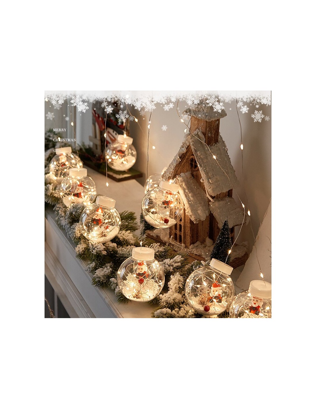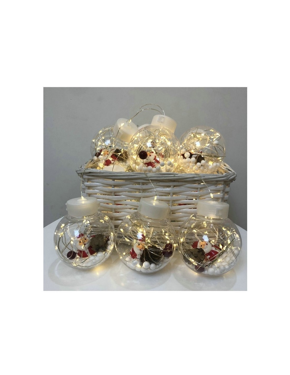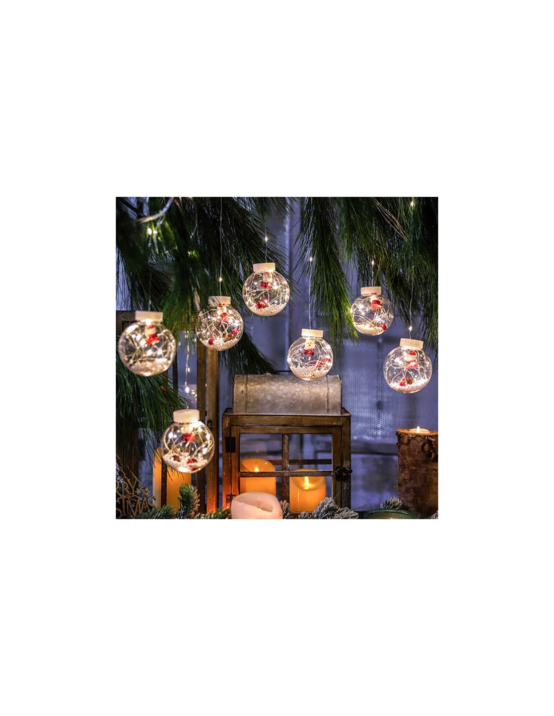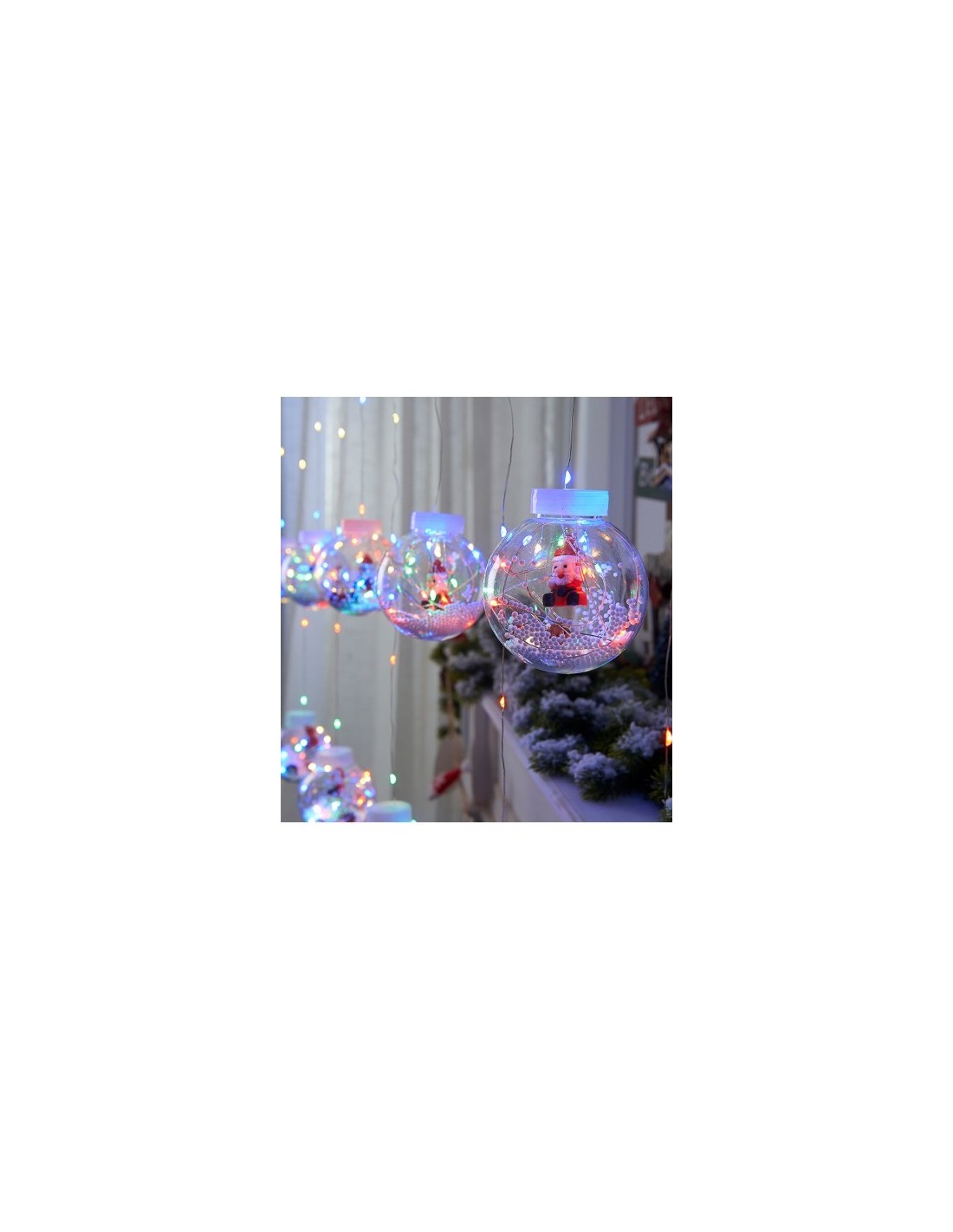 Instalatie perdea cu globuri si Mos Craciun, 10 globuri, 2.5m , diverse culori