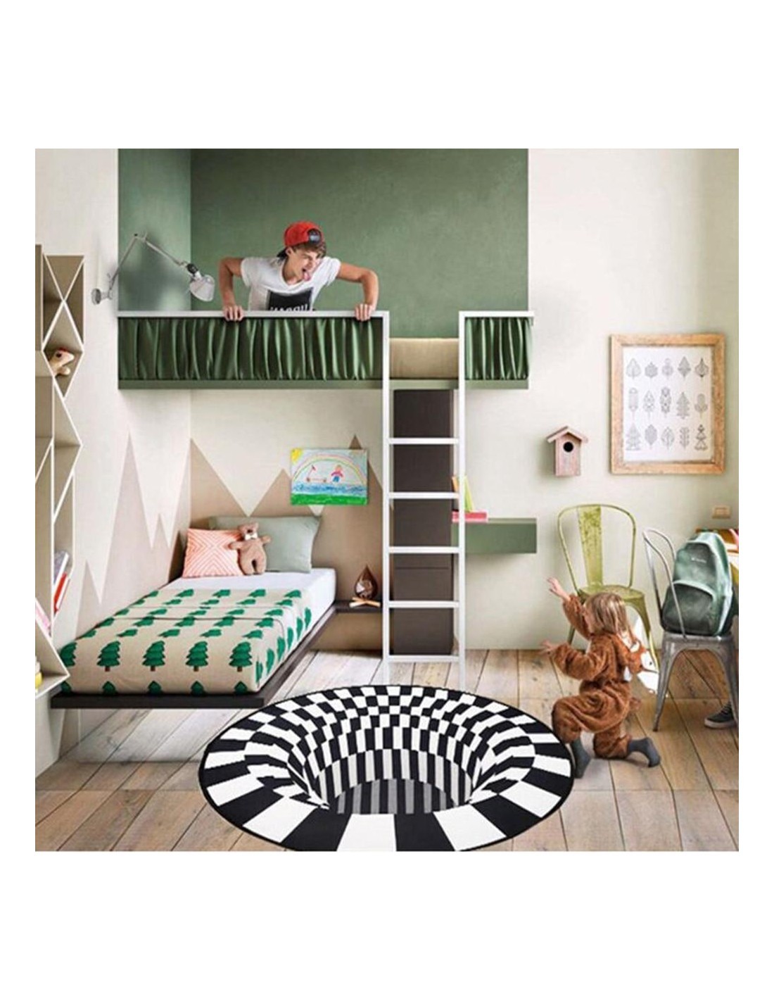 Covor alb/negru cu iluzie 3D, diametru 1 metru