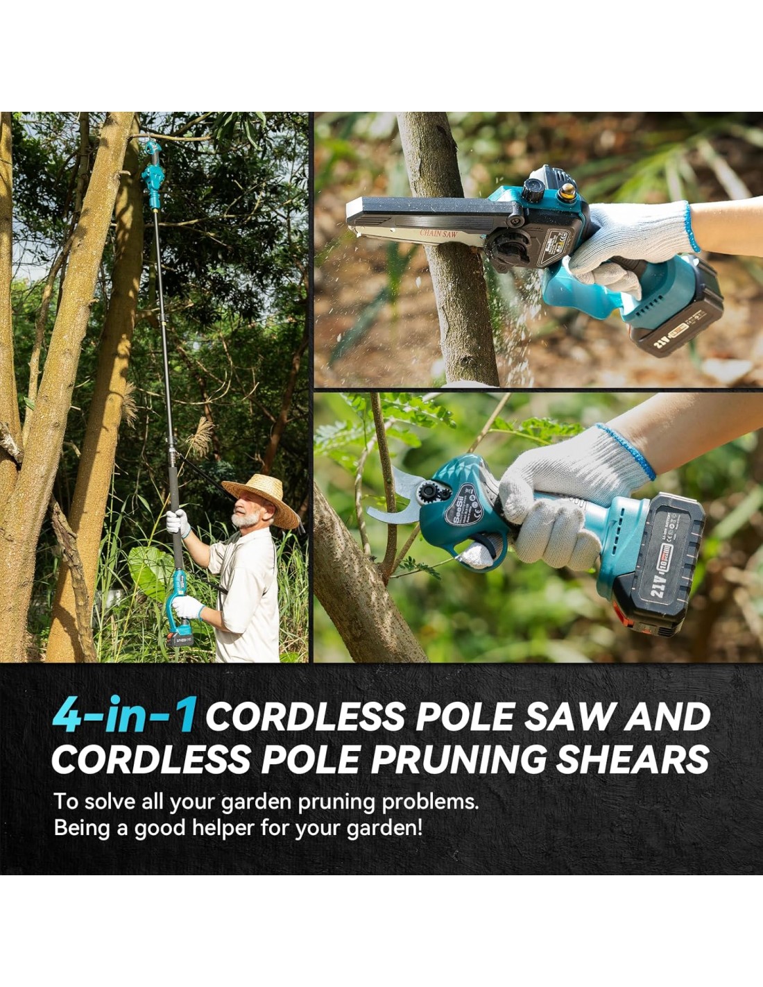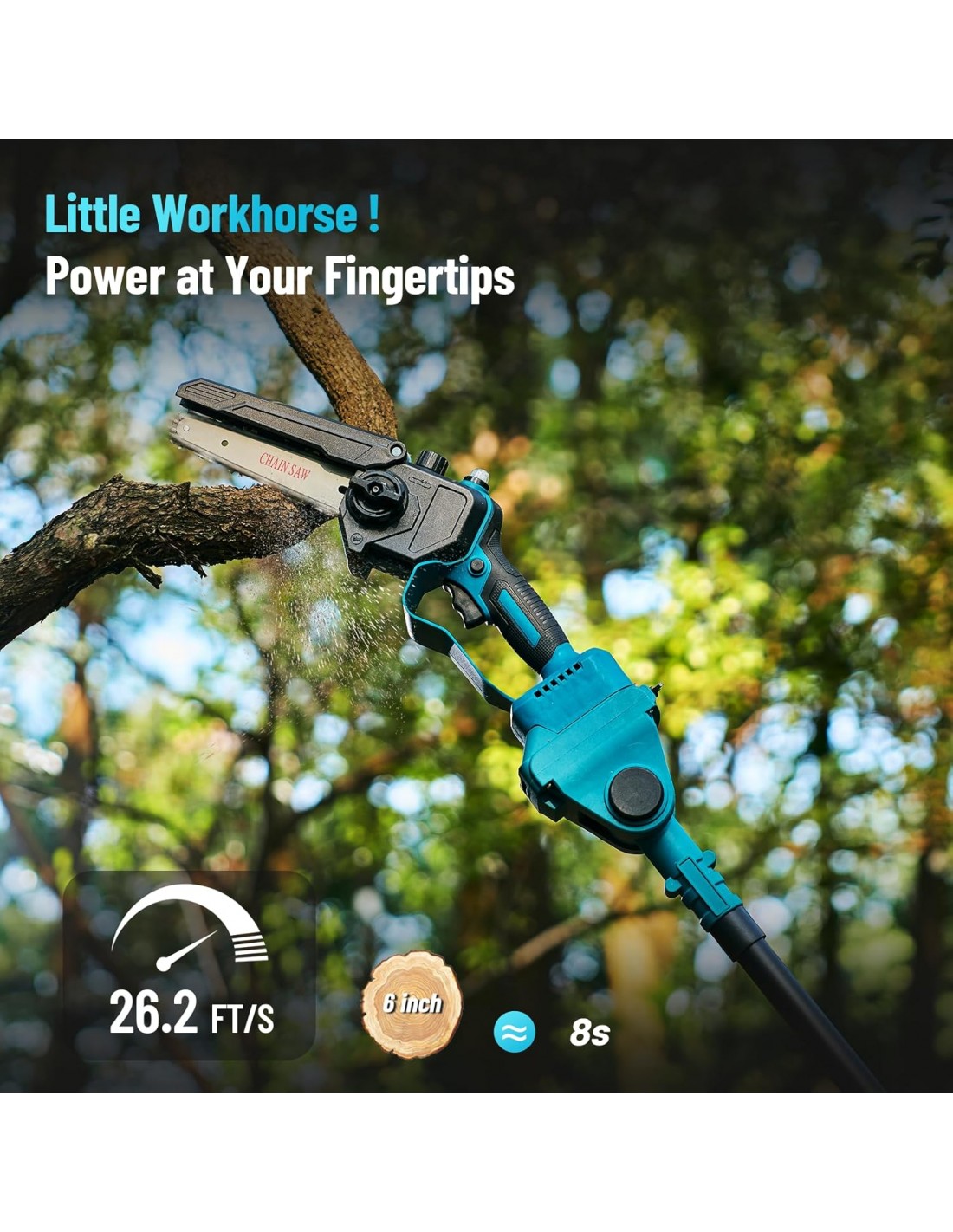Mini drujbă de 6 inch alimentată de un sistem de 48V, echipat cu 2 acumulatori pentru o durată prelungită de utilizare. Acest set este ideal pentru lucrări de tăiere a ramurilor și întreținerea plantelor, având un braț telescopic de 2 metri care permite accesul în zone mai greu de ajuns, precum și un unghi reglabil de tăiere, oferind flexibilitate și eficiență. Un partener de încredere pentru grădinari profesioniști sau amatori care doresc să lucreze rapid și eficient în grădină.