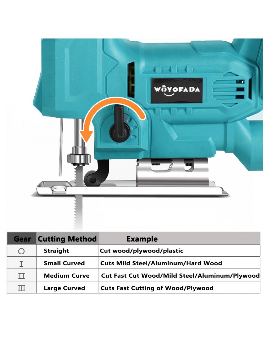 Variator de turație: Unul dintre punctele forte ale acestui fierăstrău este variatorul de turație. Acesta permite utilizatorului să regleze viteza lamei în funcție de necesități. Prin ajustarea turației, utilizatorul poate obține o tăiere precisă în funcție de materialul pe care îl taie și poate controla mai bine performanța și durata de viață a lamei.